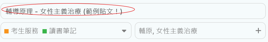 1. 標題命名 科目 - 範圍(章節/概念) eg, 輔原 - 阿德勒學派;普心 - 全範圍;統計 - 中央極限定理