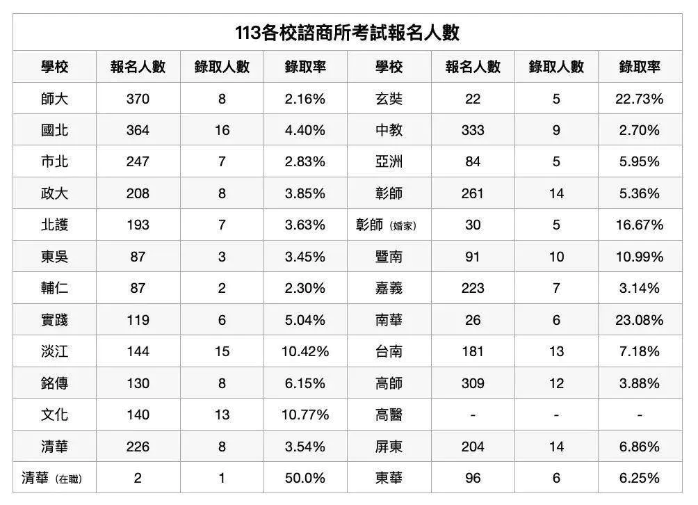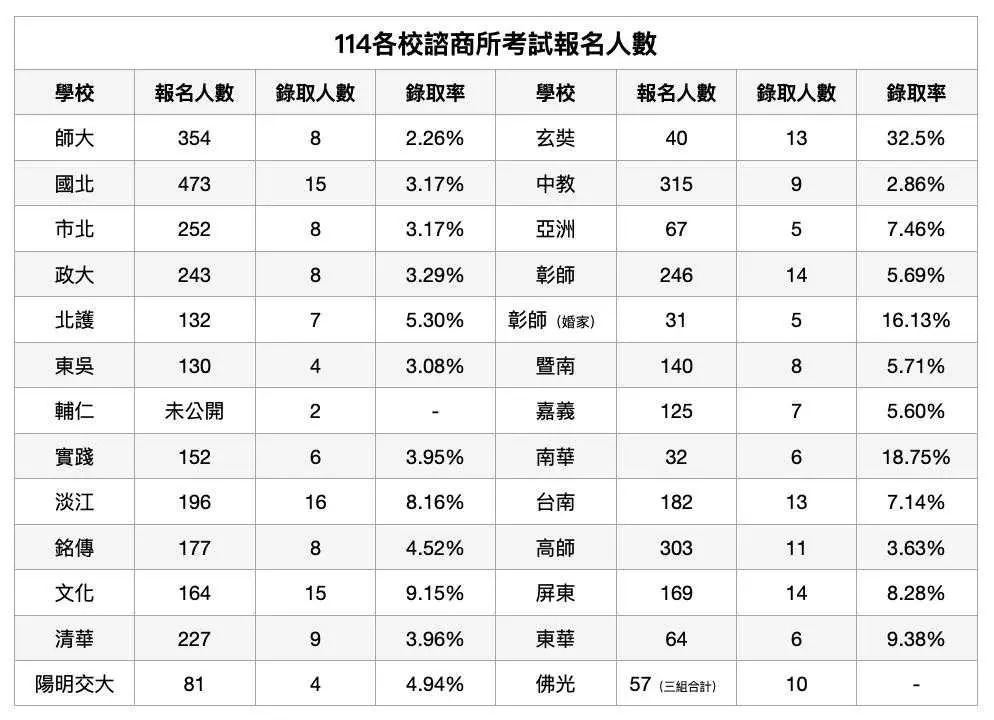 各校諮商所考試報名人數|113、114