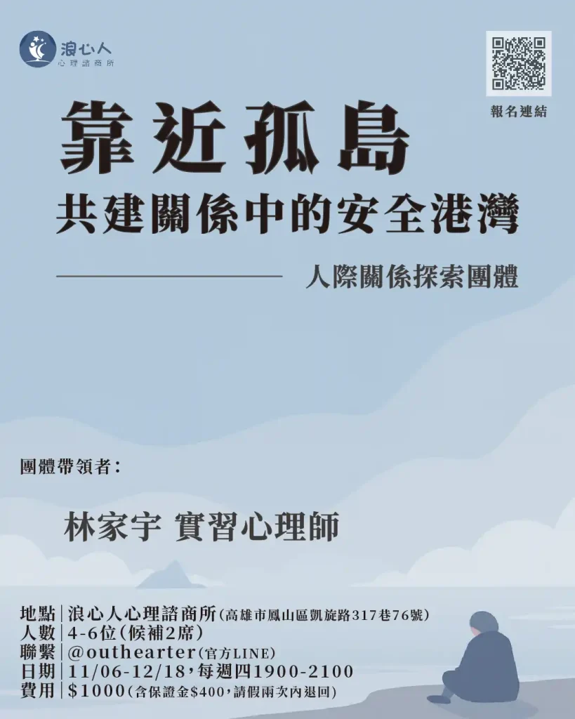 - 主題:《靠近孤島,共建關係中的安全港灣》 ─ 人際關係探索團體